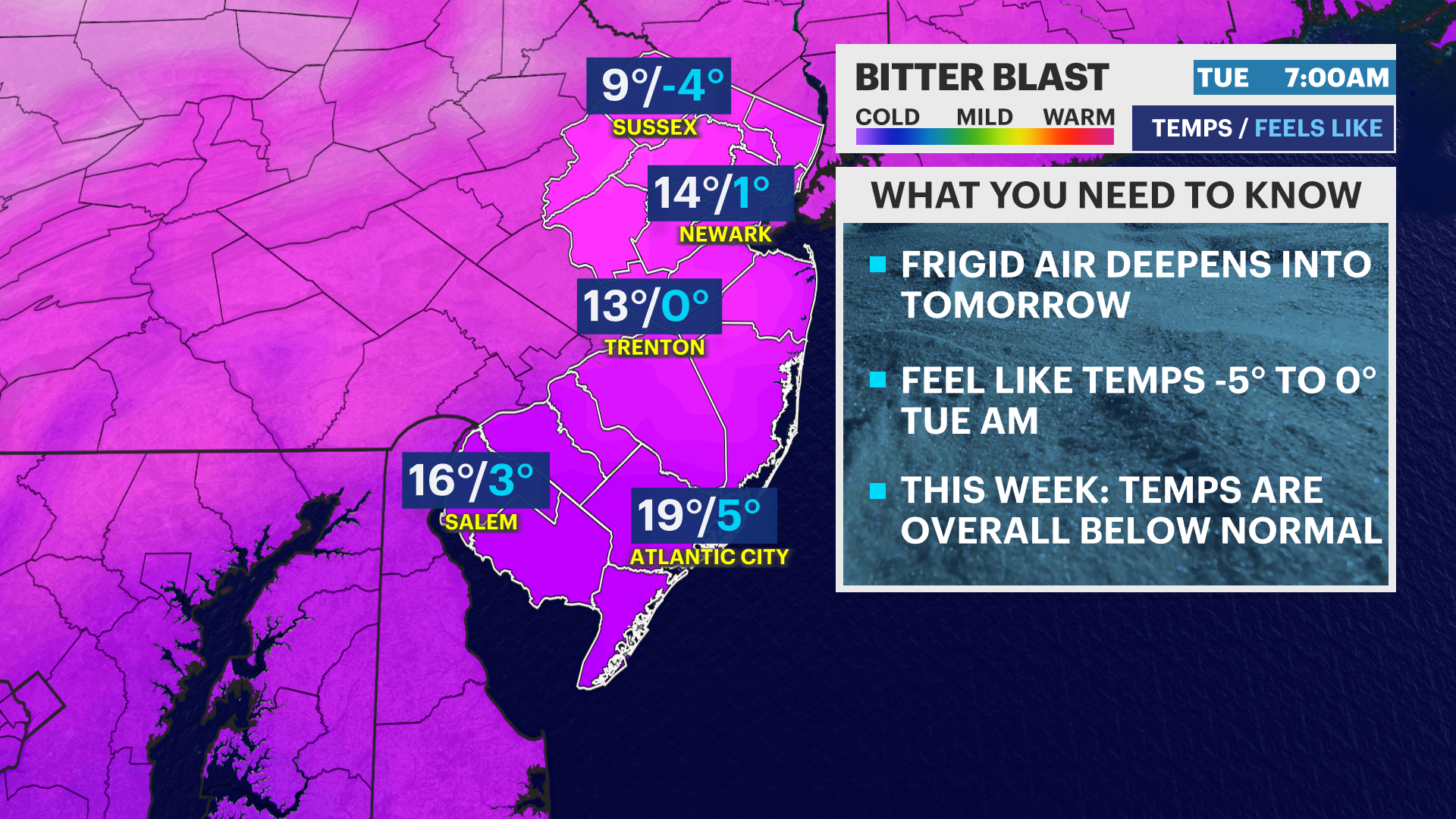 BITTER BLAST: Feel like temperatures dip below zero by Tuesday AM