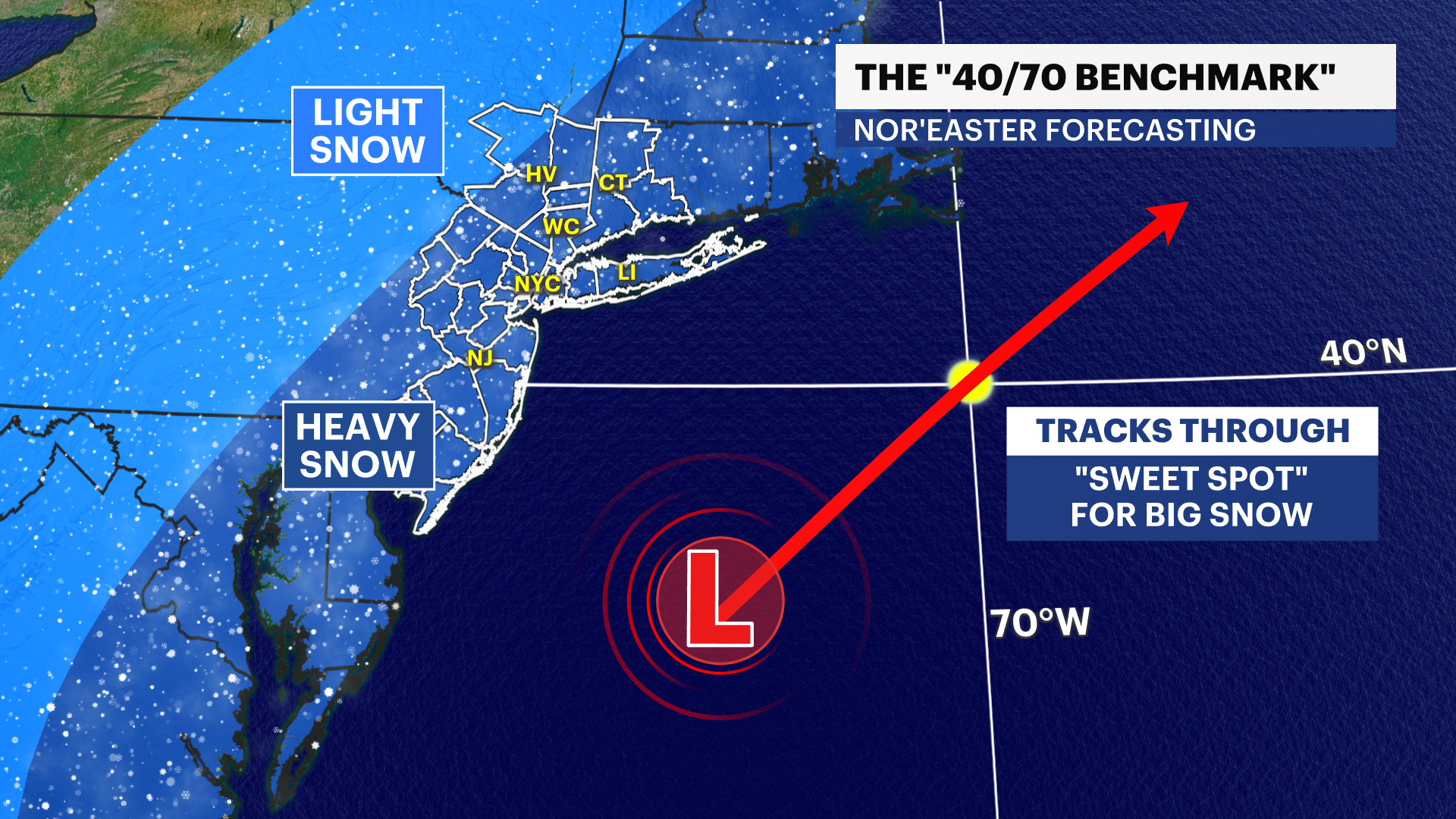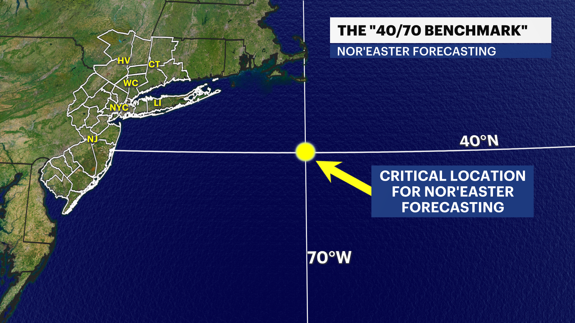 However, regardless of the storm’s formation, the most critical feature of nor’easter forecasting is the 40/70 Benchmark.