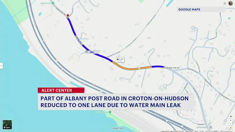 Water main leak reduces Albany Post Road to one lane in Croton-on-Hudson