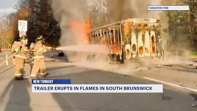 Dump truck slams into a trailer during morning commute, igniting fire and fuel spill in South Brunswick