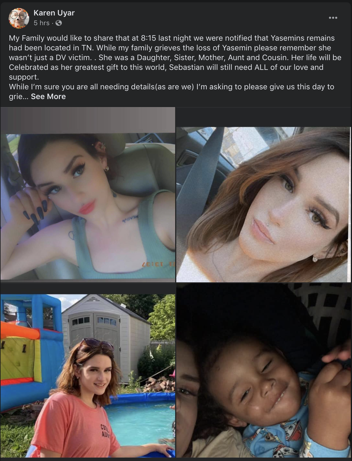 Uyar's body, in a wooded area off a highway of a small Tennessee town.