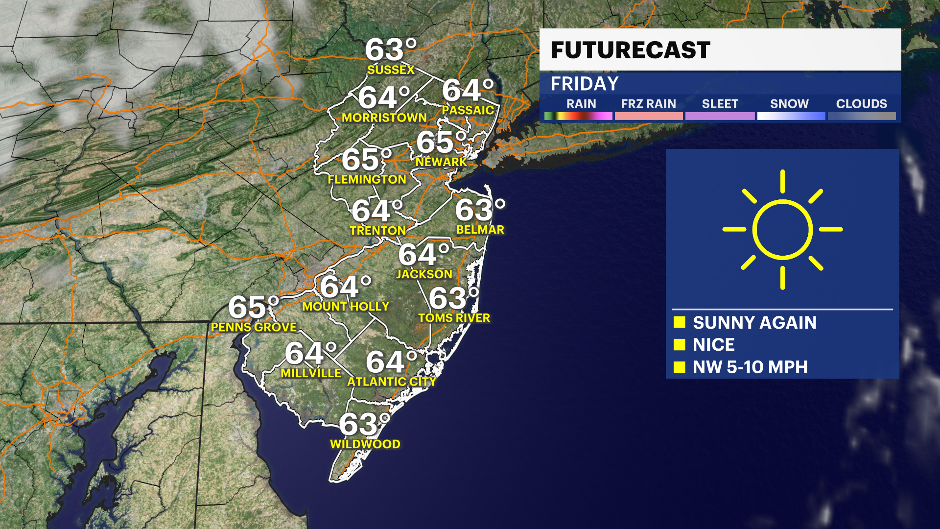 Sunshine and blue sky continues across New Jersey through today and tomorrow as pleasant fall-like weather lingers over the state.