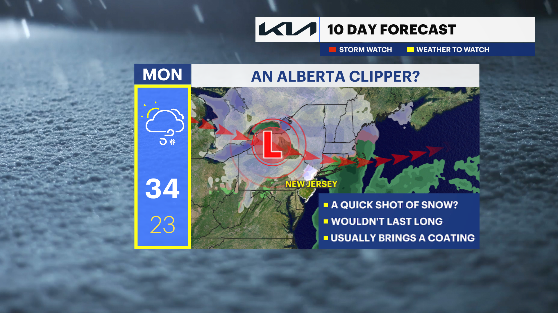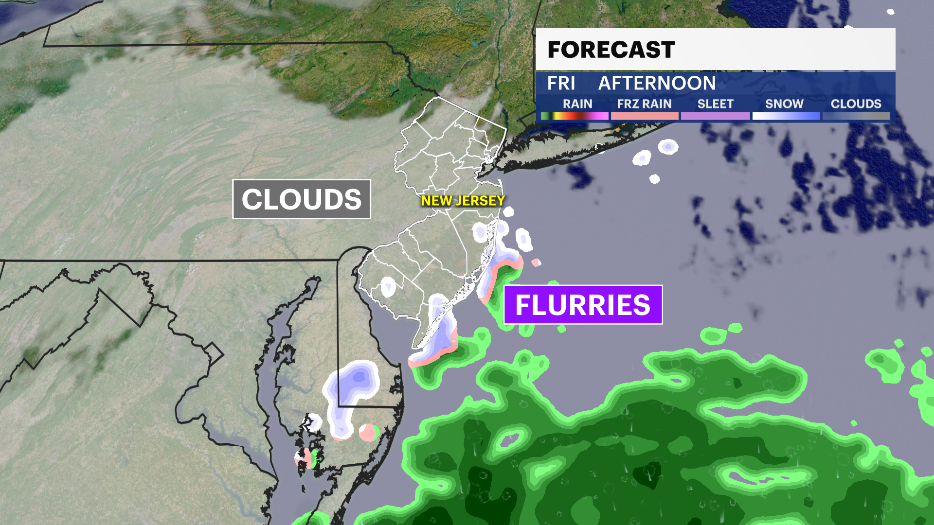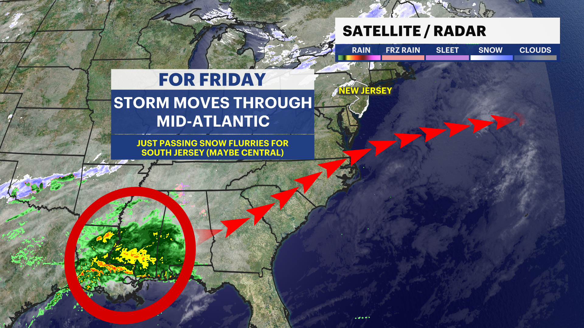 A few flurries are possible in South Jersey and parts of Central Jersey Friday afternoon as a storm passes by the mid-Atlantic. This won't bring any impact to our area other than a few festive flakes.