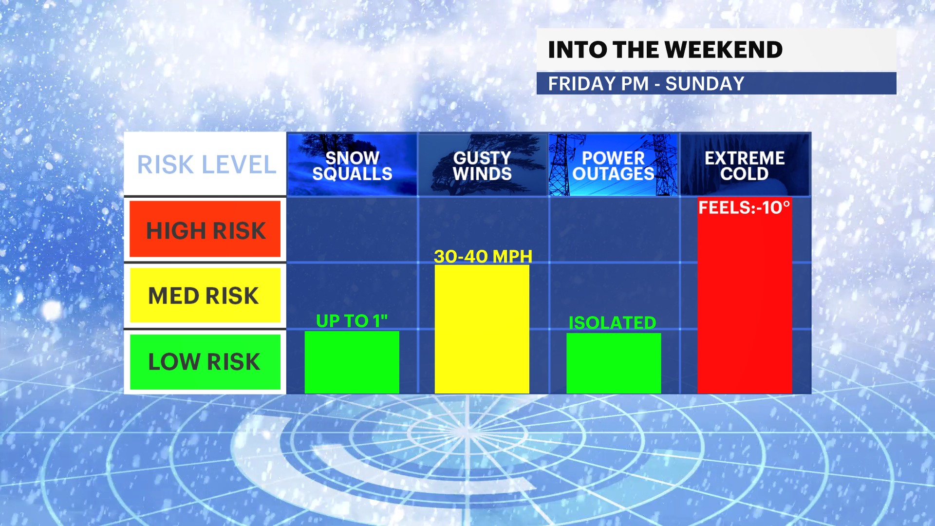 Temperatures tumble as a result, sinking into the teens and even single digits by the overnight into Sunday. These strong gusts can knock out power in prone areas with weaker infrastructure. This can be incredibly dangerous on a cold night like the one we are expecting Saturday into Sunday. This cold is dangerous and will be piercing.