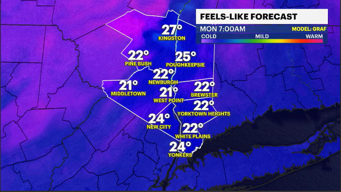 OVERNIGHT: Partly cloudy, windy, and very cold. Wind gusts range from 30 to 50 mph, and feel-like temps in the 20s. Lows in the 30s.