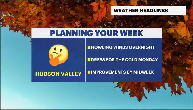 MONDAY: Dress for the cold and wind. Sun and clouds, windy and very cold in the morning. Gusts will still range from 30 to 40 mph in the afternoon. Highs will be in the mid-40s—lows in the 30s.