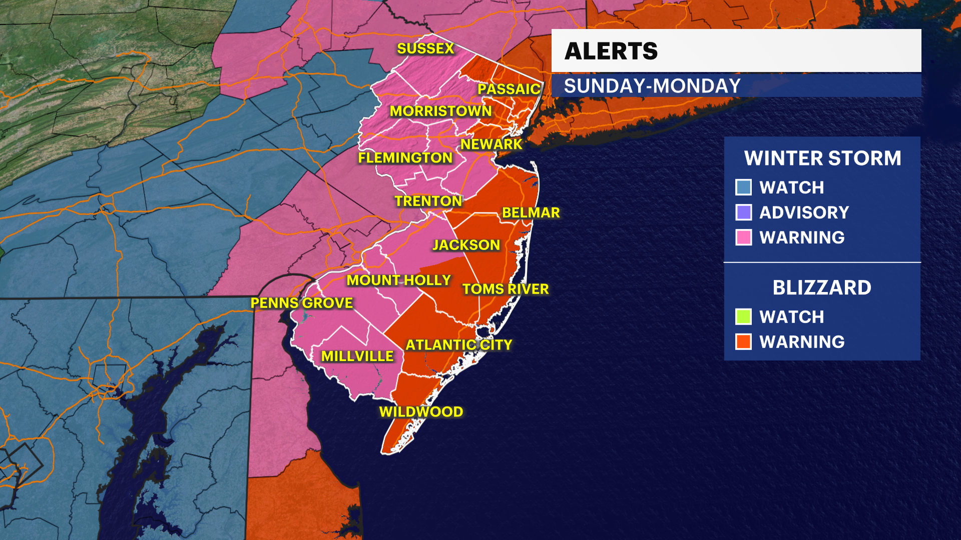A blizzard warning and a winter storm warning have has been issued across New Jersey.