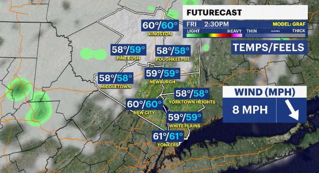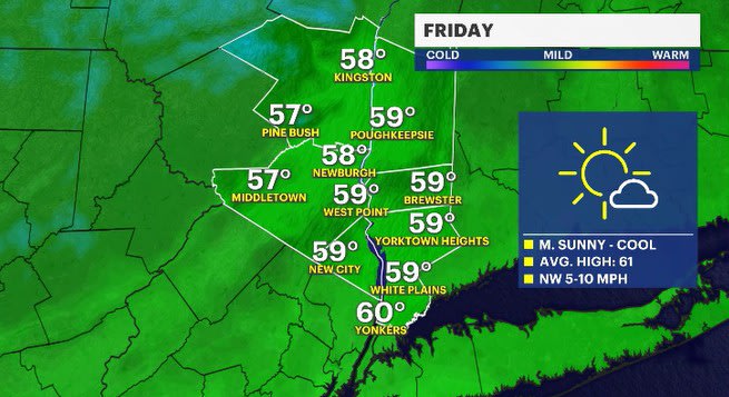 FRIDAY: Mostly sunny. Highs: upper 50s. Lows: mid to upper 30s.