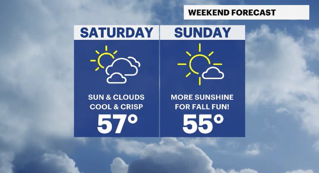 • A stellar Autumn weekend is on the way with cool & crisp air, mostly sunny to partly cloudy skies and a light breeze.