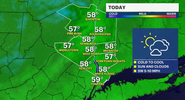 TODAY: Mix of sun and clouds. Highs: upper 50s to low 60s.
