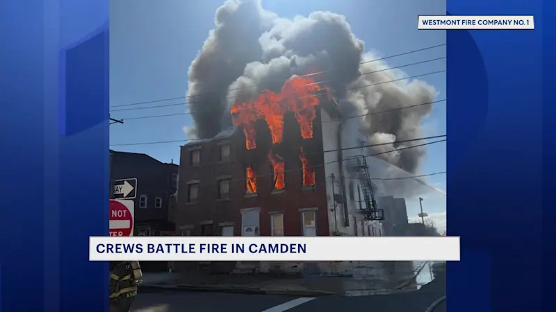 Two-alarm building fire erupts in Camden