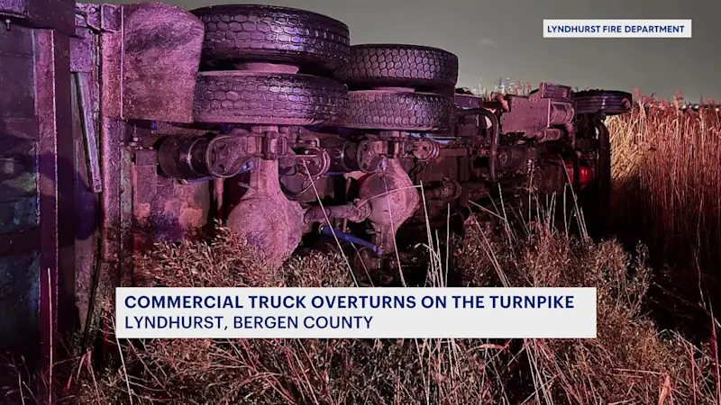 Tractor-trailer overturns on NJ Turnpike in Lyndhurst