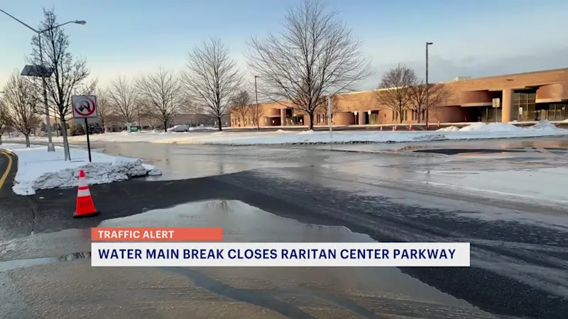 Crews work to repair water main break on Raritan Center Parkway