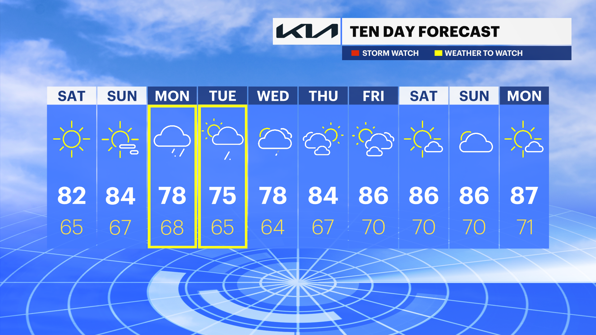 COMING UP: Mix of sun and clouds next week, with high temperatures in the mid-80s.