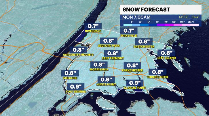A round of light snow showers will move through starting around 7 p.m. this evening and continuing overnight. Impacts are expected to be minor, with snow ending around 6 a.m. Monday. A general 1 inch of snow is expected but isolated reports of 2 inches are possible.