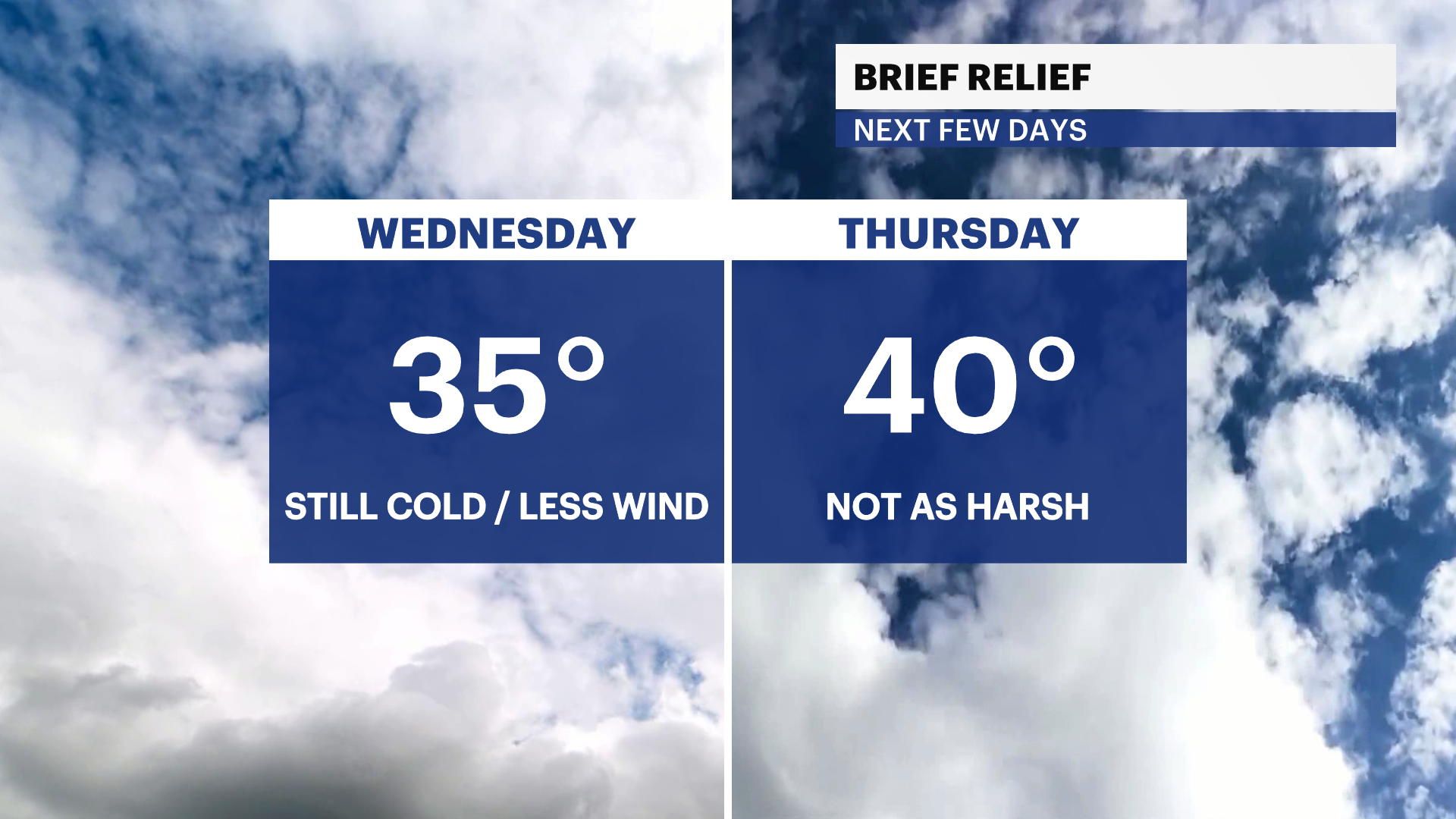 Wednesday: Mostly sunny and noticeably milder. Temperatures climb into the low to mid 30s.