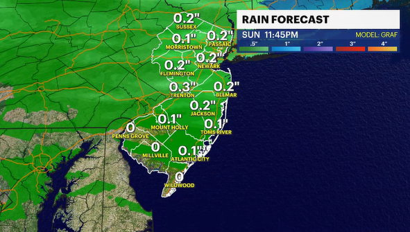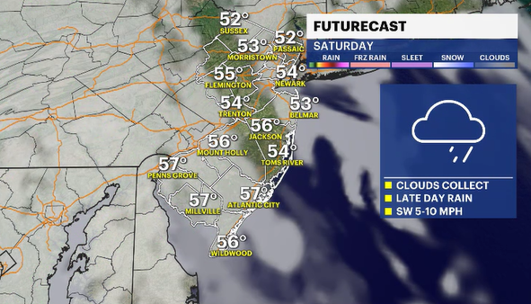 The rain will linger through the very early hours of Sunday and be gone by daybreak. The daily high for Sunday will be set very early Sunday morning. Once winds kick in, the temperatures will be dropping and dropping quickly. The winds will add an extra "bite" to the air so be prepared for wind chills, especially heading to the Giants game on Sunday. Kick-off temperature will be around 53 but the winds are going to be howling and sitting on the shady side of MetLife Stadium, making it feel very cold.