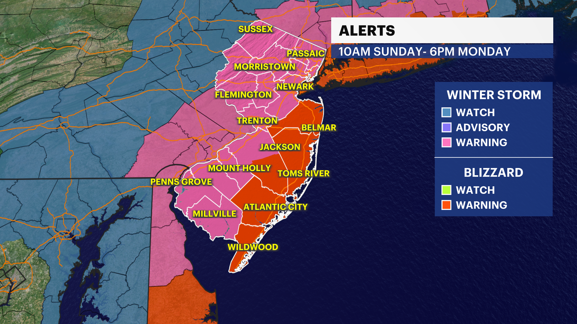 A blizzard warning and a winter storm warning have has been issued across New Jersey.