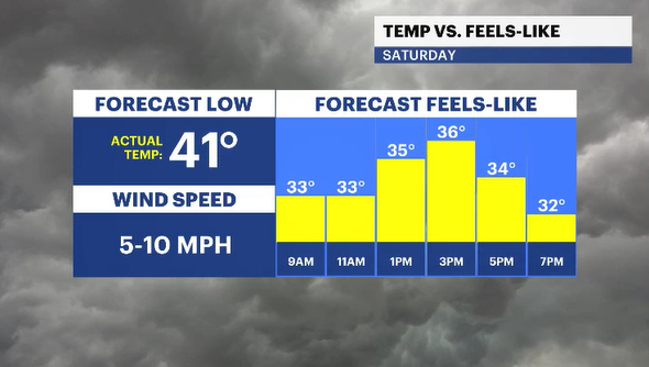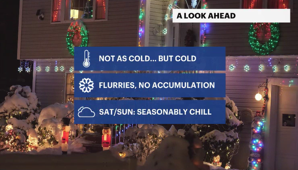 Nothing to worry about. It's just a few festive flakes as I like to call them. Temperatures tonight and through the weekend remain cold. Not as cold as Friday was, but cold for this time of year by a few degrees.