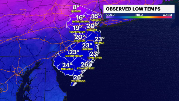Monday and Tuesday morning lows will drop to the teens and daily highs struggle to get to the mid 30’s.