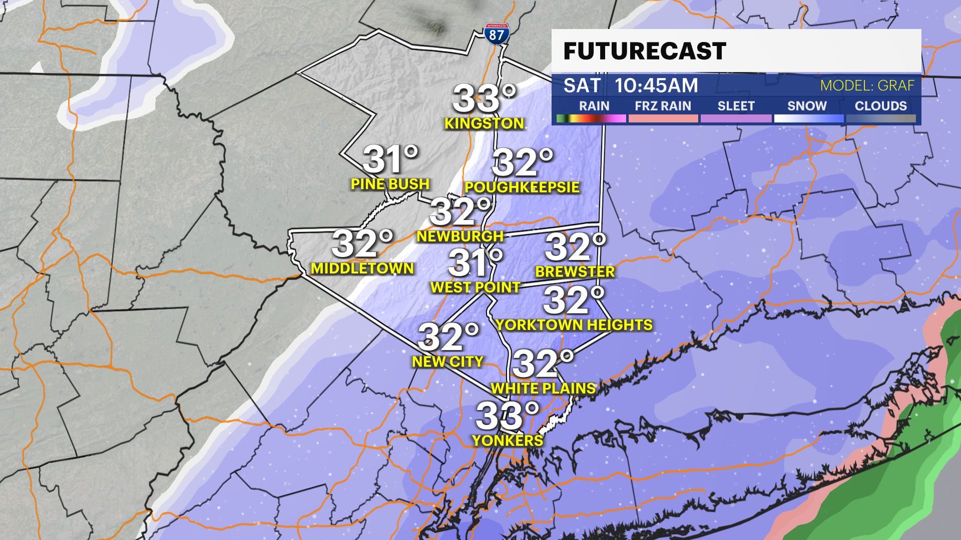 Minor rain and snow showers are expected on Saturday that could bring half of an inch to 1" of snow, mainly north of I-95. A larger storm will develop off the coast on Sunday, but it's too early to know for certain if the storm will track close enough to bring plowable snow or if dry air will win over. As of Thursday night, most major computer models show at least some snow Sunday evening into early Monday morning. This could have impacts for the Monday morning commute.