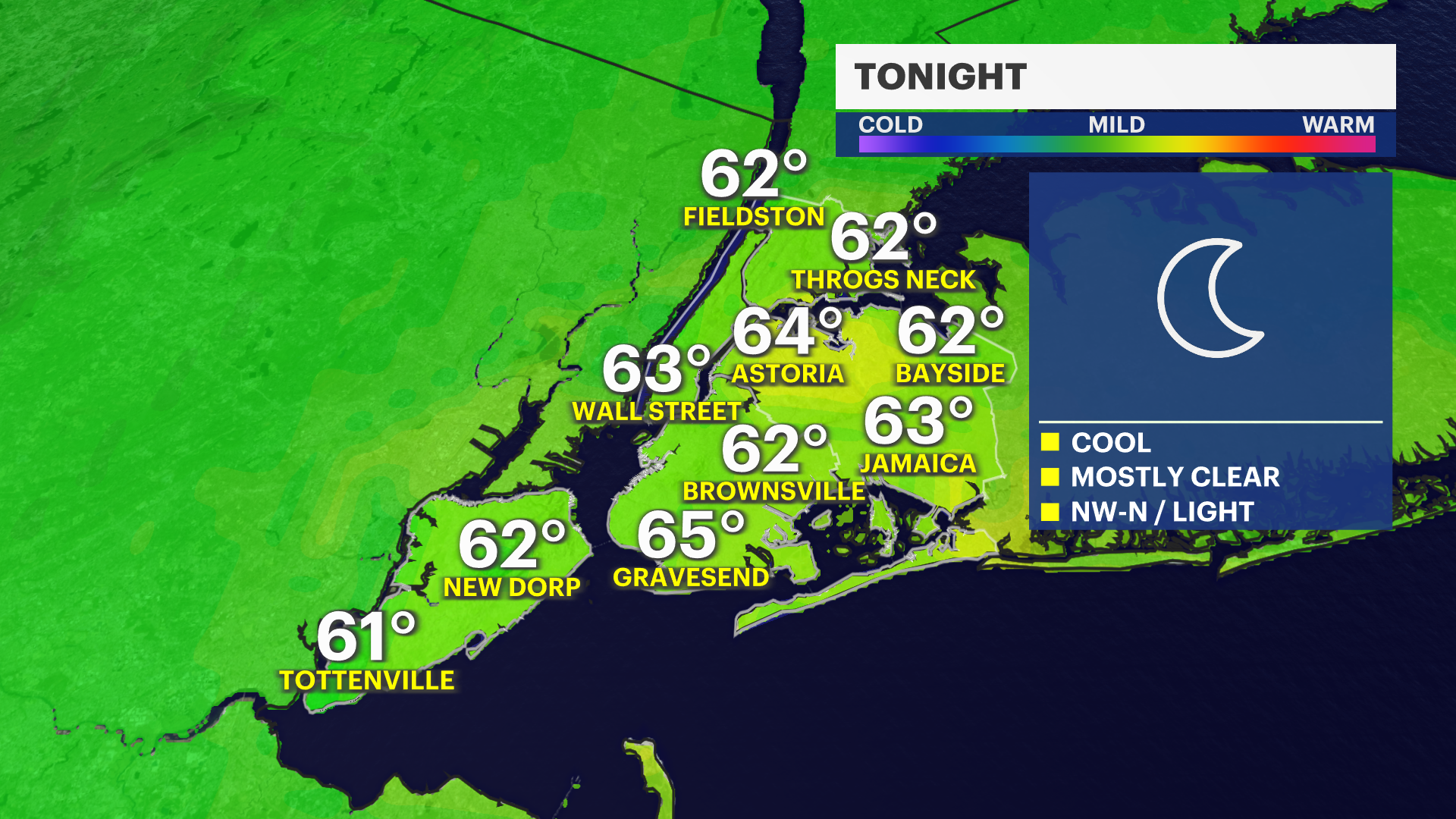 Overnight: Mostly clear, cool and pleasant. Lows near 63.
