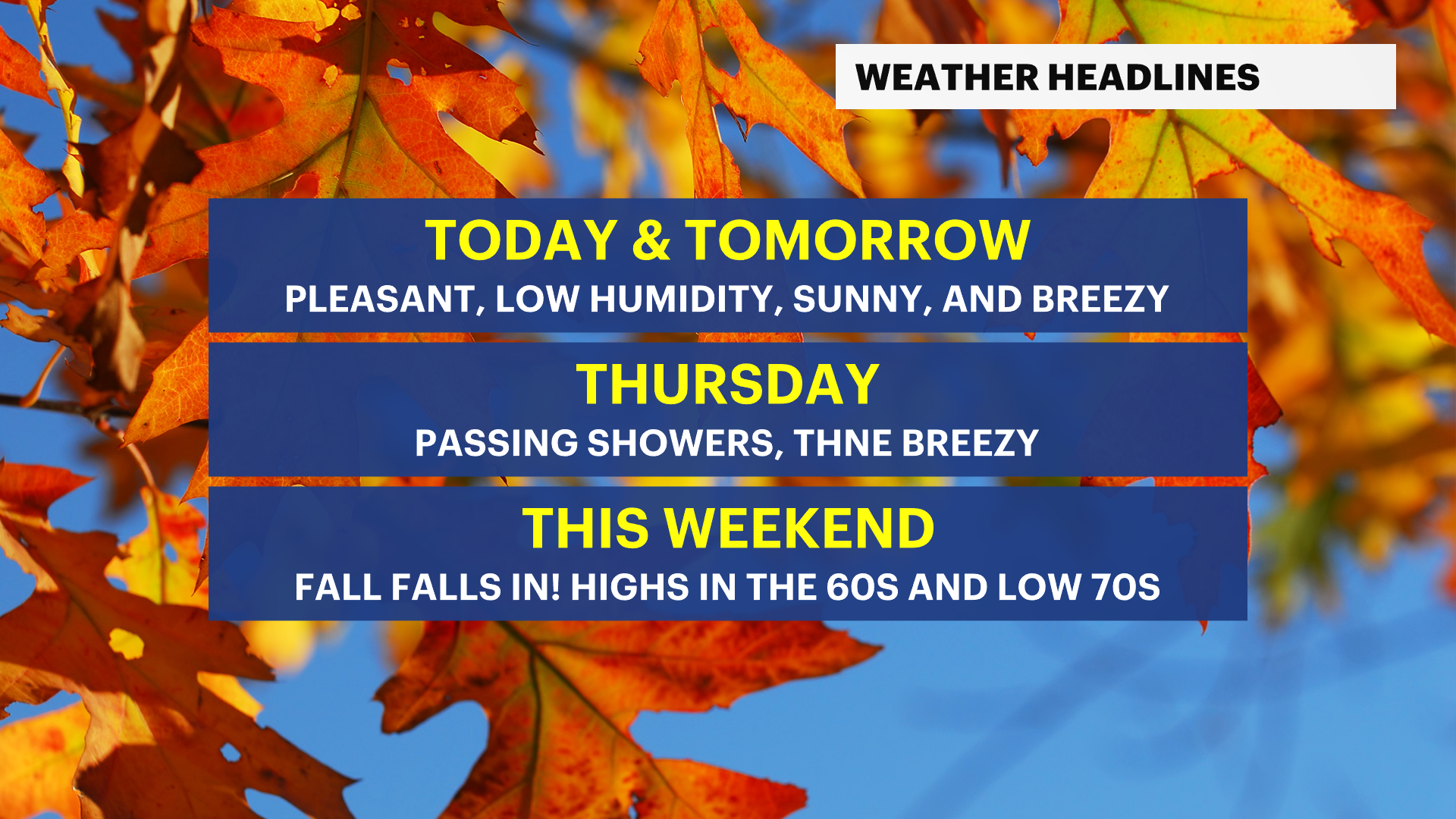 NEXT: The first full day of fall will feature sunshine, cool and comfy temps in the 60s.