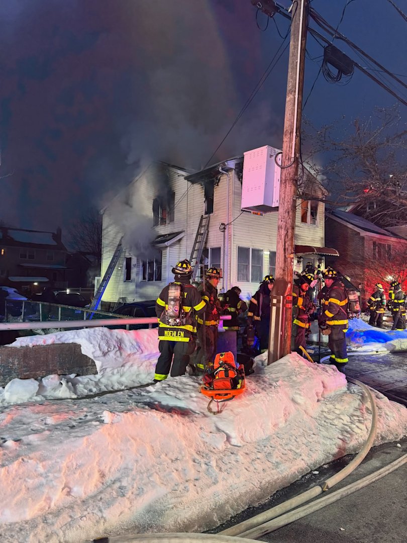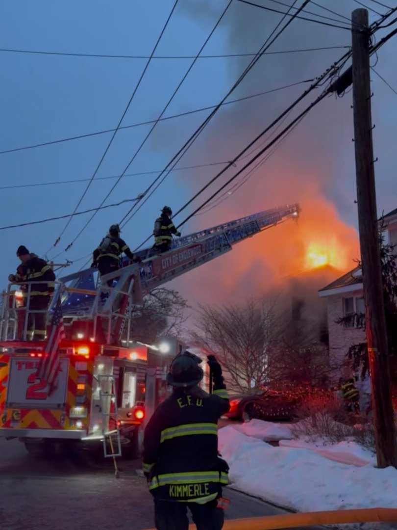 Firefighters began arriving at the home on Roosevelt Avenue around 5 a.m., calling for mutual aid as smoke poured from the windows. Fire trucks lines the street as crews worked to douse the flames in the 2.5-story house.