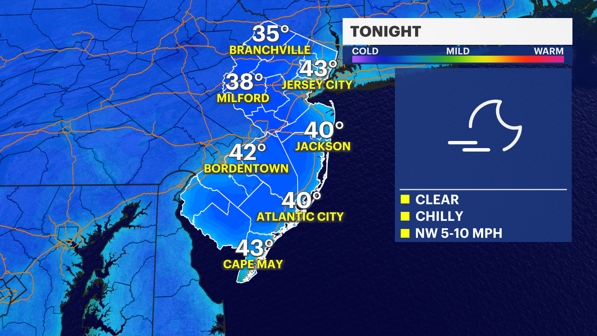 It's a cold start this morning with the first frost of the season for sections of central and south Jersey. Look for a mix of clouds and sunshine today with a windswept sprinkle, especially for northern Jersey. Highs today reach the upper 50s and low 60s.