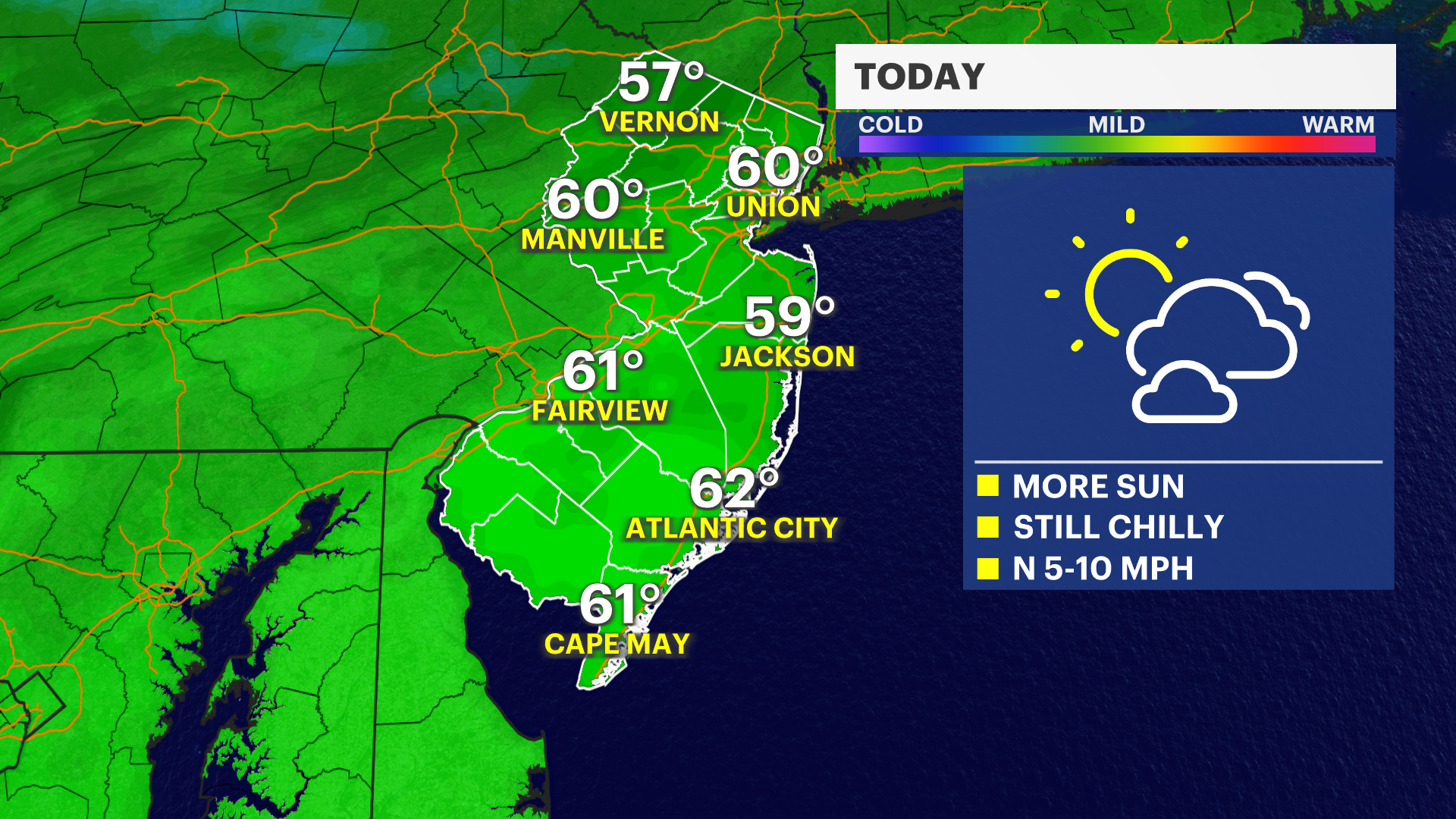 SUNDAY: Similar to Saturday. Highs in the upper 50s. Mix of sun and clouds.