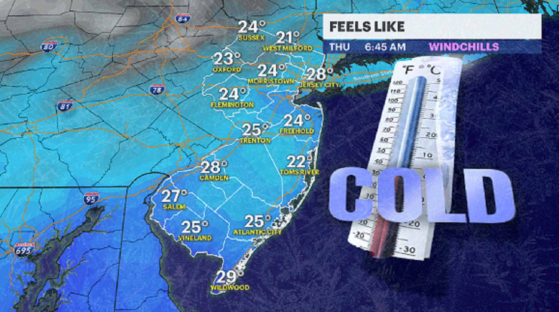 Parts of New Jersey could see temperatures in the 20s by Thursday morning. Wind chills could make temperatures feel as if they are in the teens.
