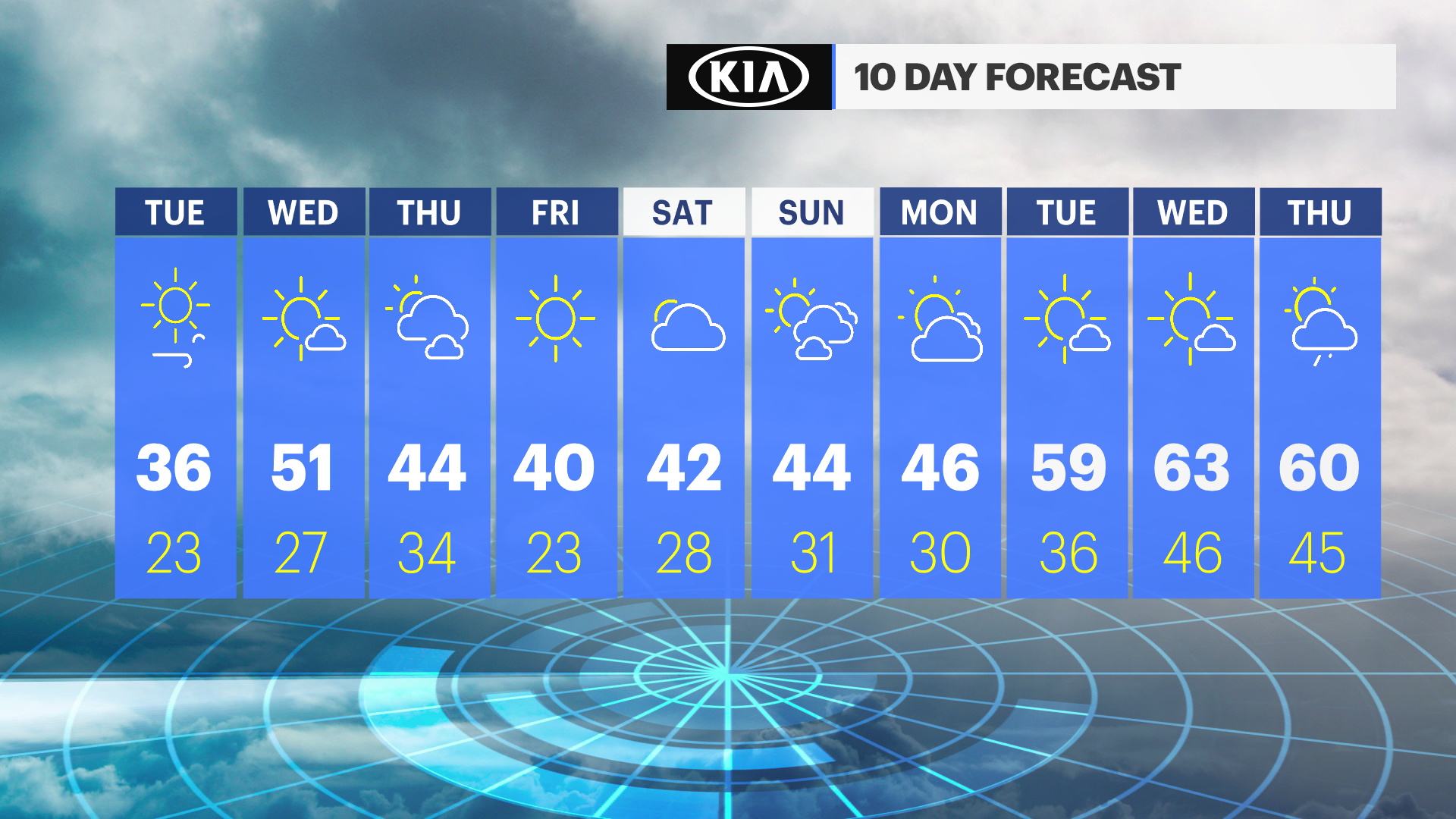 in the mid-40s, with mostly sunny skies. Conditions will be seasonable.