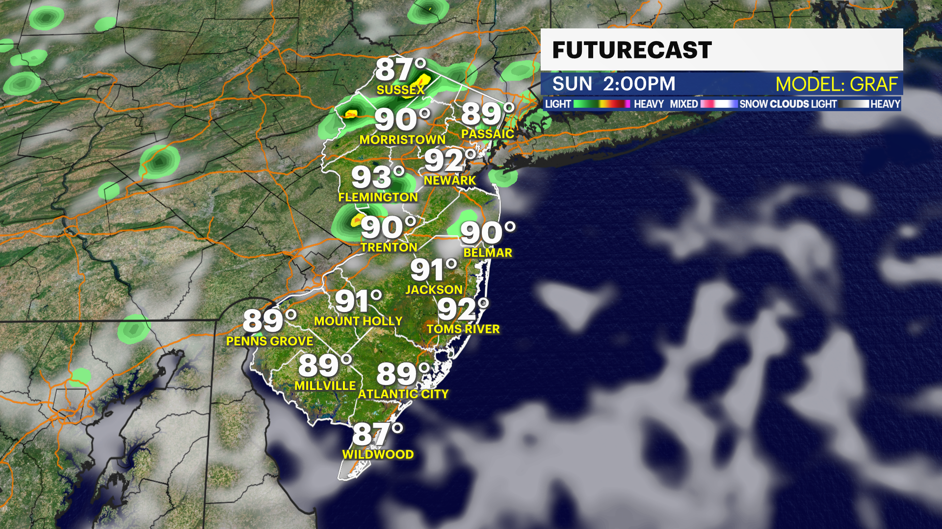 SUNDAY: Expect a hazy, hot and humid day with highs in the lower-90s but there is a better chance for an evening storm.
