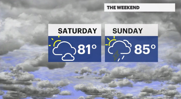 SUNDAY: Day starts off mostly dry, with daytime highs around 85degrees. Isolated rainstorms develop sometime after 8 p.m. Thunderstorms are mostly expected to impact areas along the New Jersey/New York border.