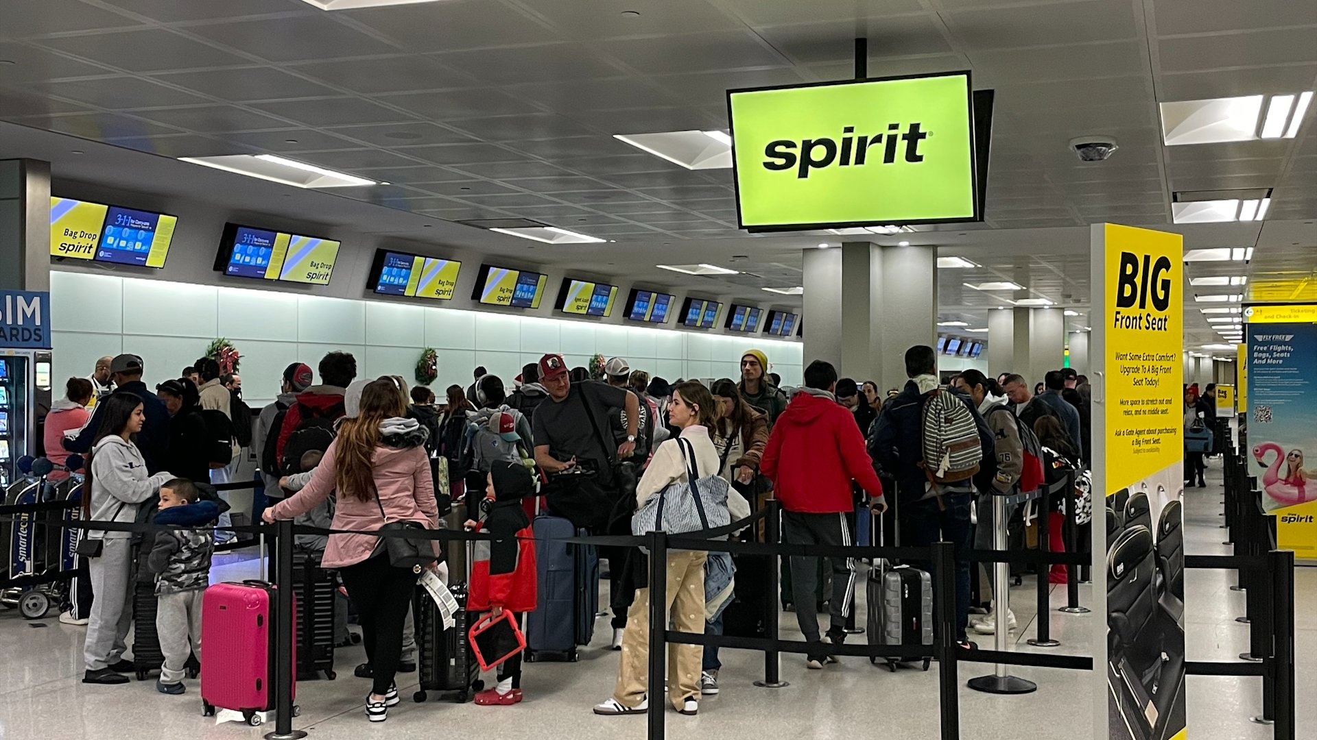 Travelers waiting in line at Newark Liberty International Airport on Friday, Dec. 22, 2023. (Tony Caputo/News 12 New Jersey)