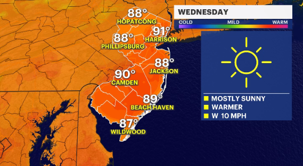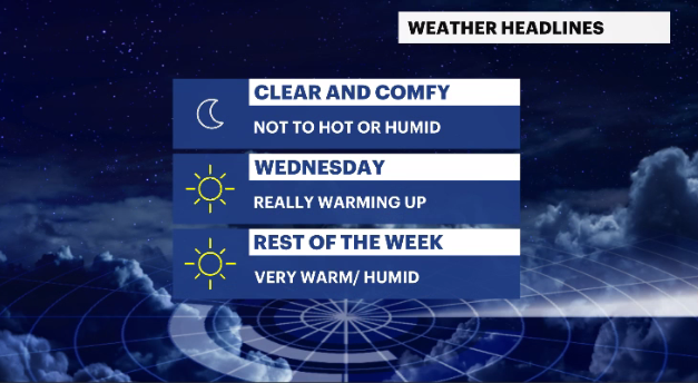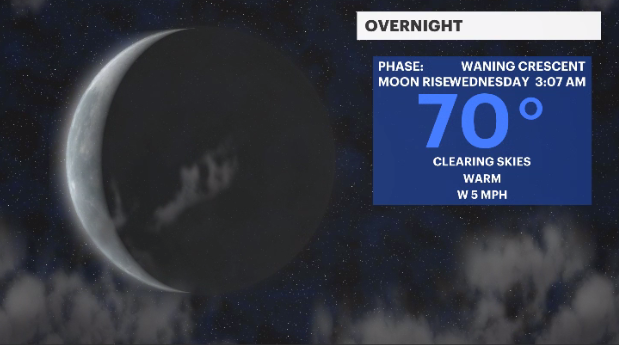 WEDNESDAY: Mostly sunny skies with temperatures in the 80s. Overnight lows cool into the upper-60s.