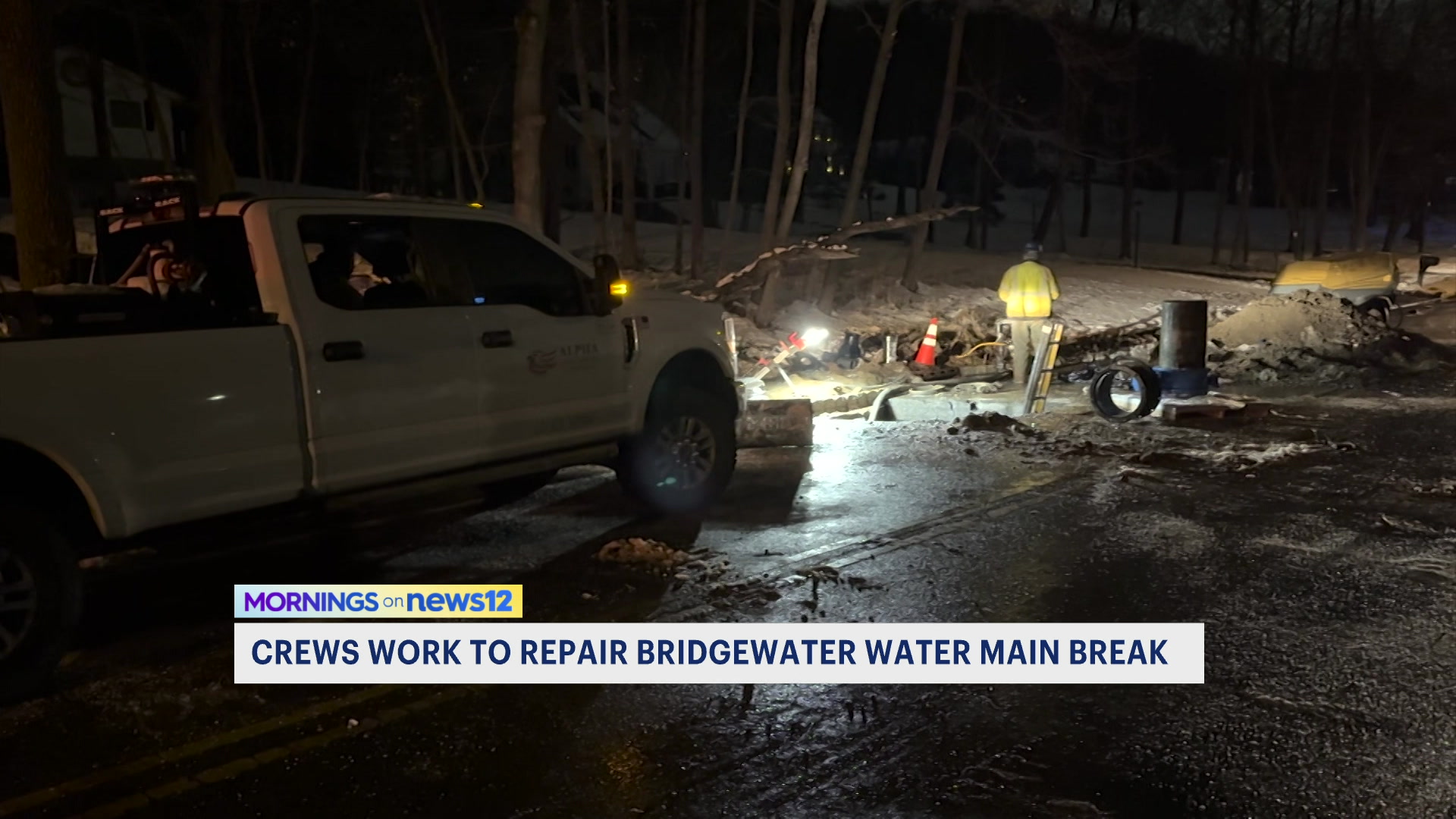 Crews repair water main break in Bridgewater on Washington Valley Road