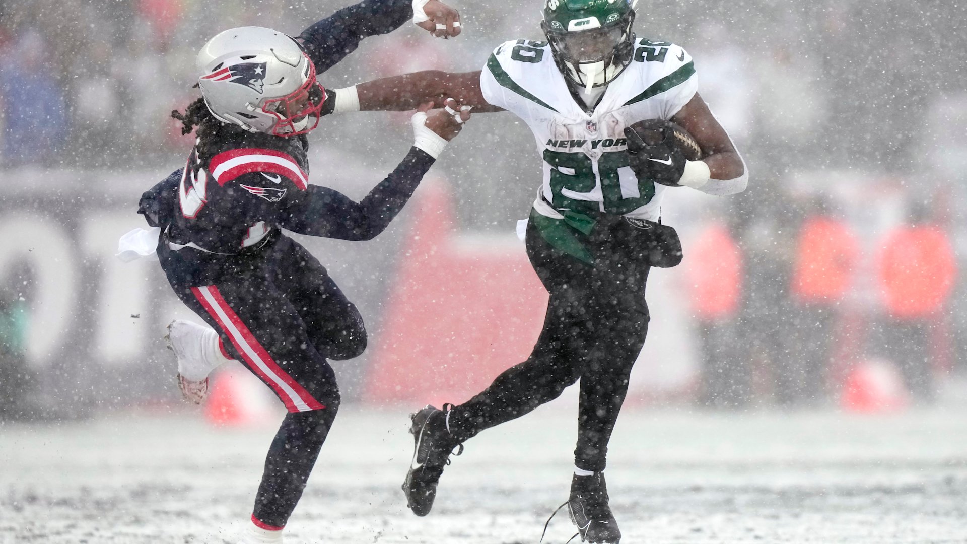 The snowy conditions made it ideal to run the ball and the Jets pounded the Patriots behind Breece Hall, who rushed for a career-high 178 yards.