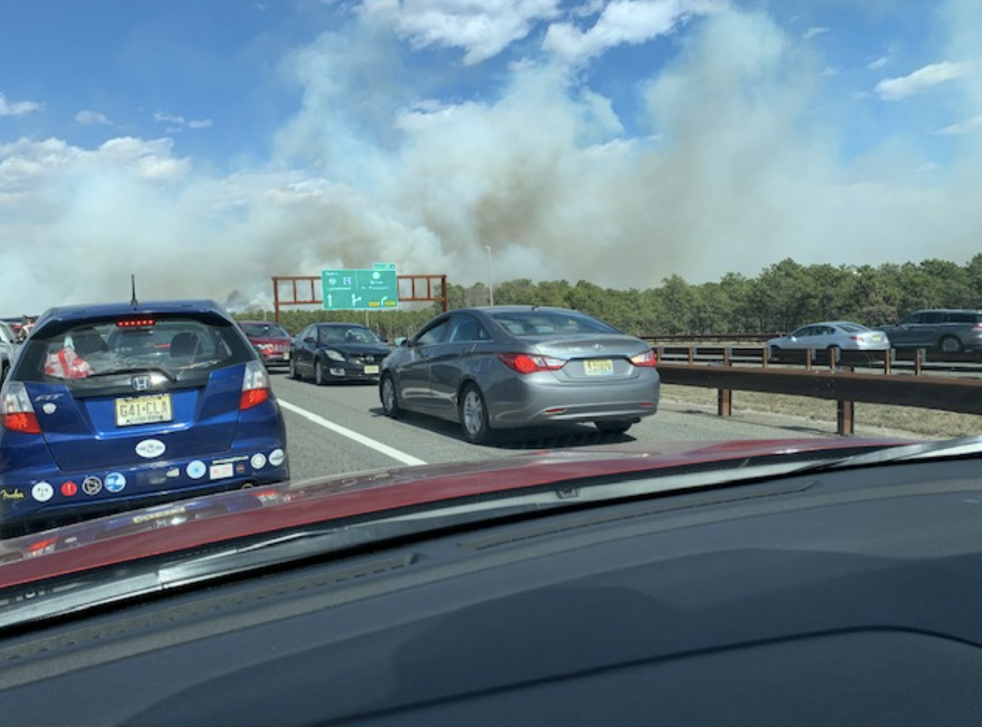 The large brush fire in Lakewood Sunday shut down the Garden State Parkway in both directions near Exit 89 for hours.