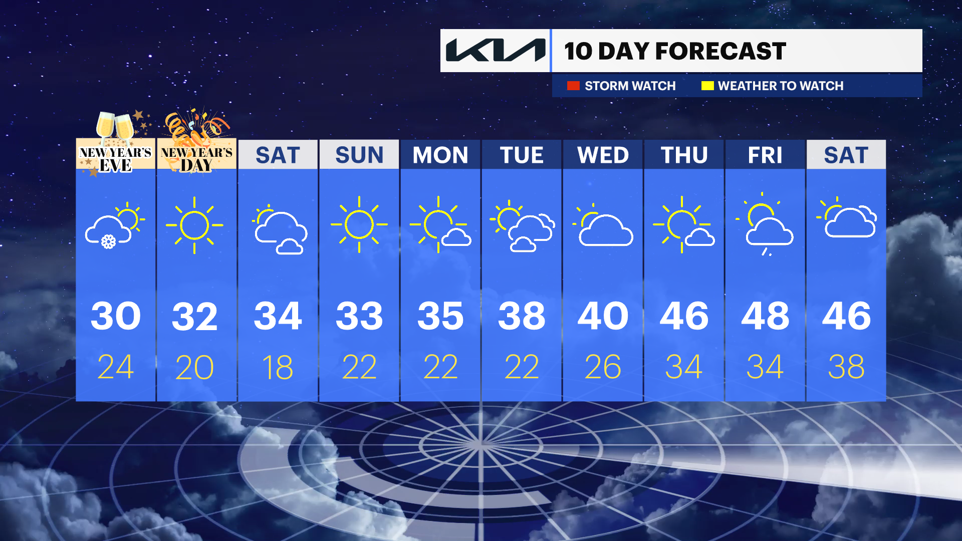 SATURDAY: Mostly sunny, High of 32.