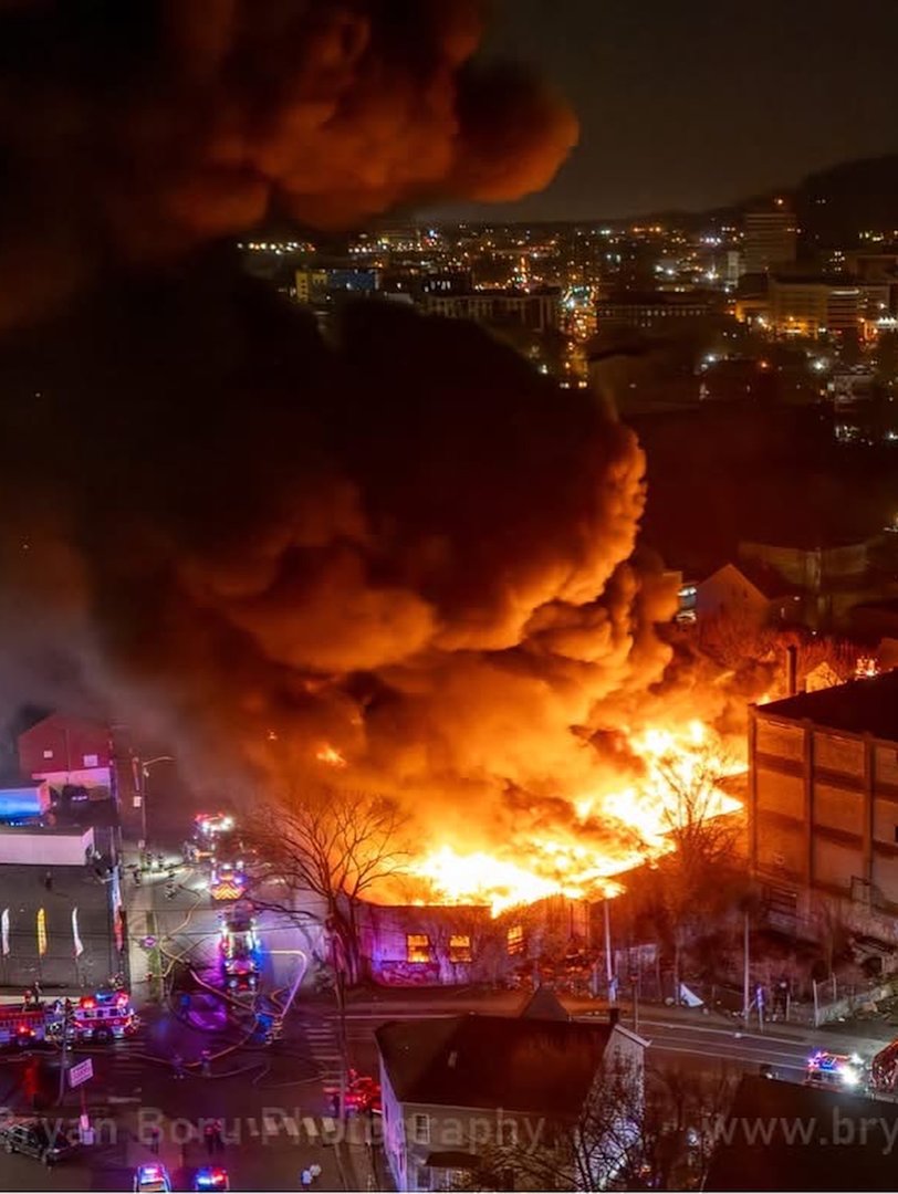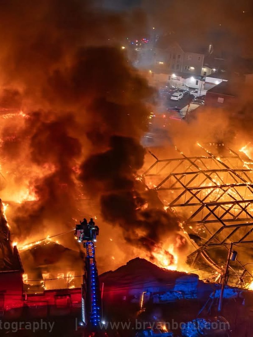 New photos and video show how a massive fire tore through an abandoned chemical factory and sent thick smoke into the sky in Paterson.