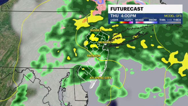 THURSDAY: Thursday has some potential to be slightly disruptive to how we get around. Moderate to heavy rainfall is expected, along with the possibility of a thunderstorm. Daytime highs around 45 degrees. Overnight lows around 38.