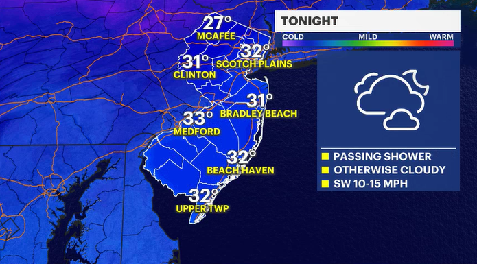 The weather maker tonight doesn't bring much in the way of wet or wintry conditions, but it will, once again, lower the boom on New Jersey with dropping temperatures.