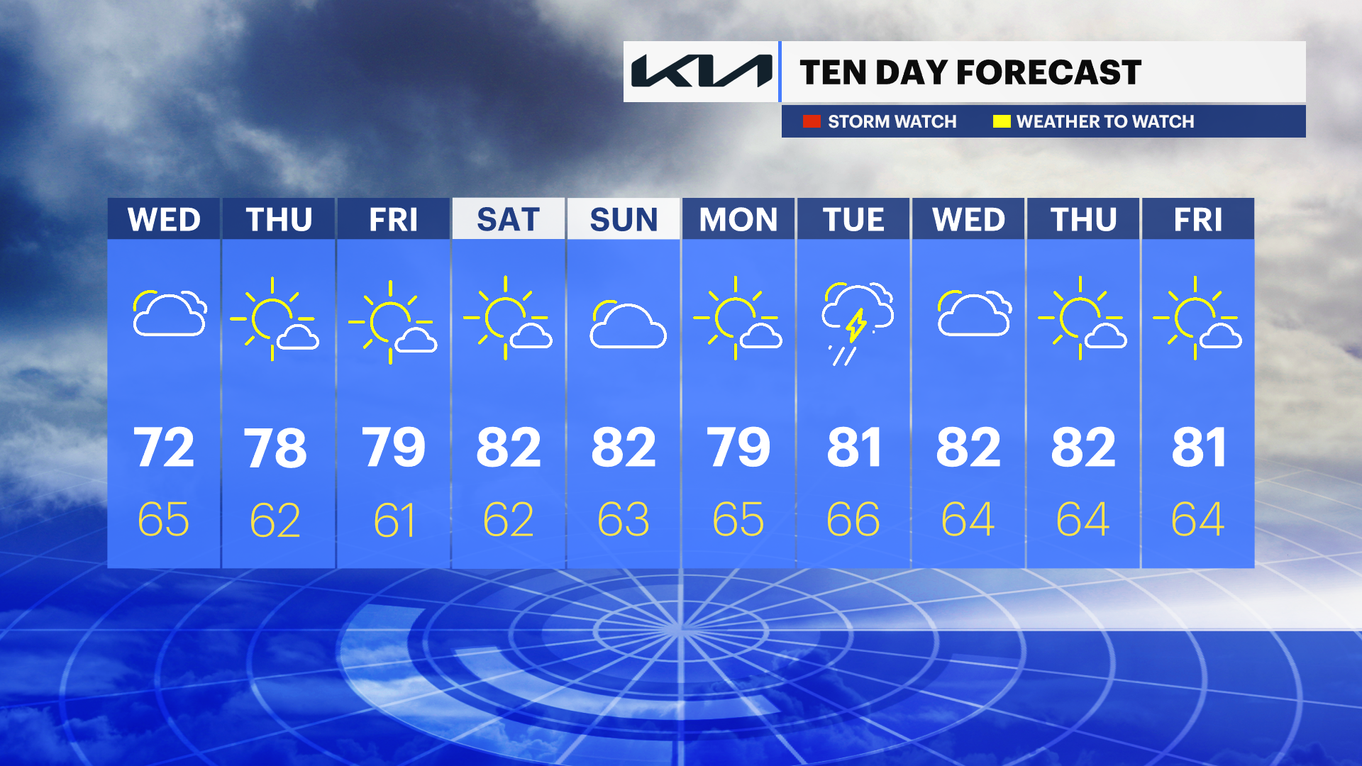FRIDAY: Mainly sunny. High of 81. Winds NE at 5 to 10 mph.