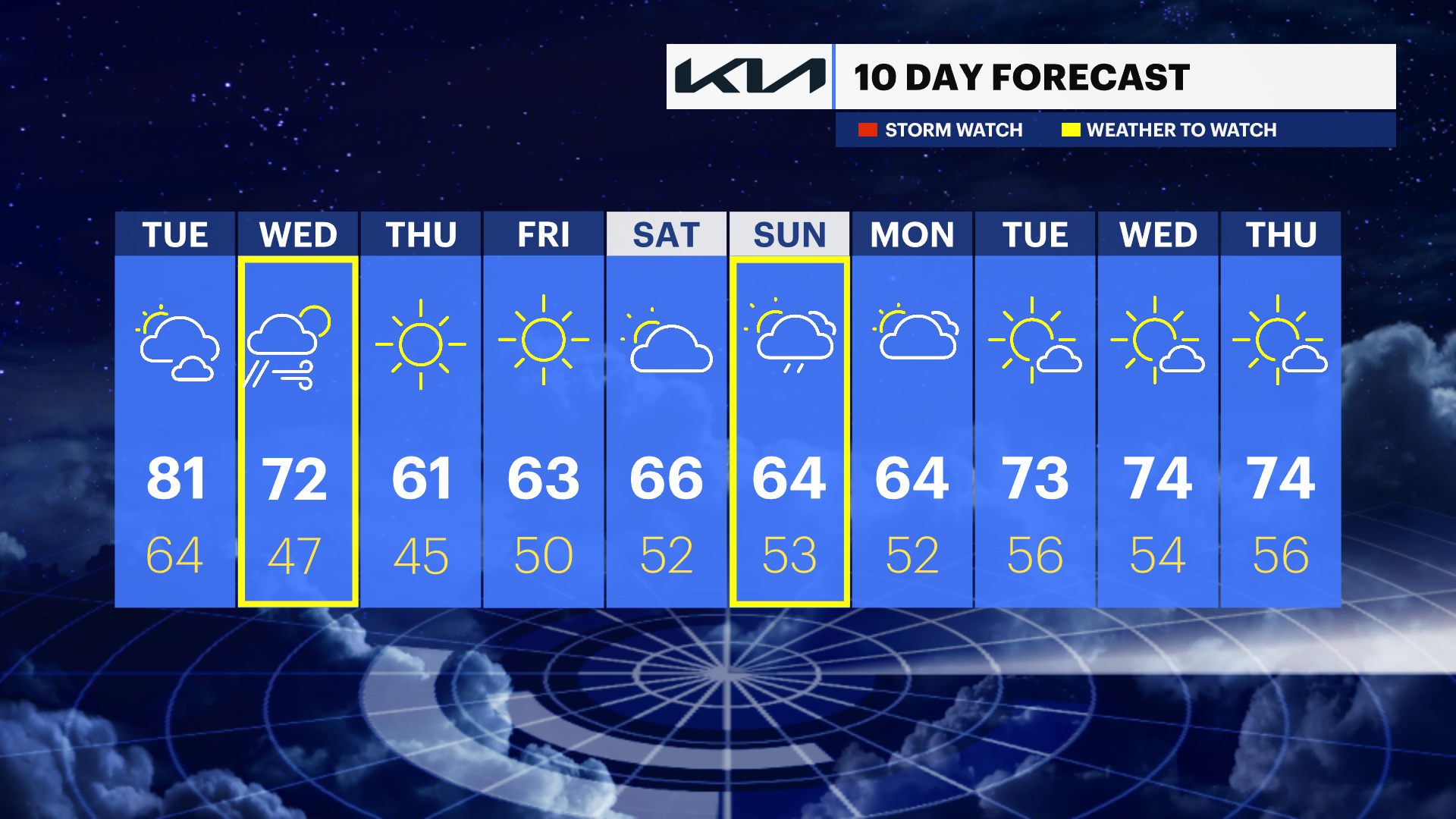 A cold front will bring rain chances throughout the region starting very early Wednesday and lasting through the morning hours. Temperatures will feel noticeably cooler, only reaching the low 70s for highs.