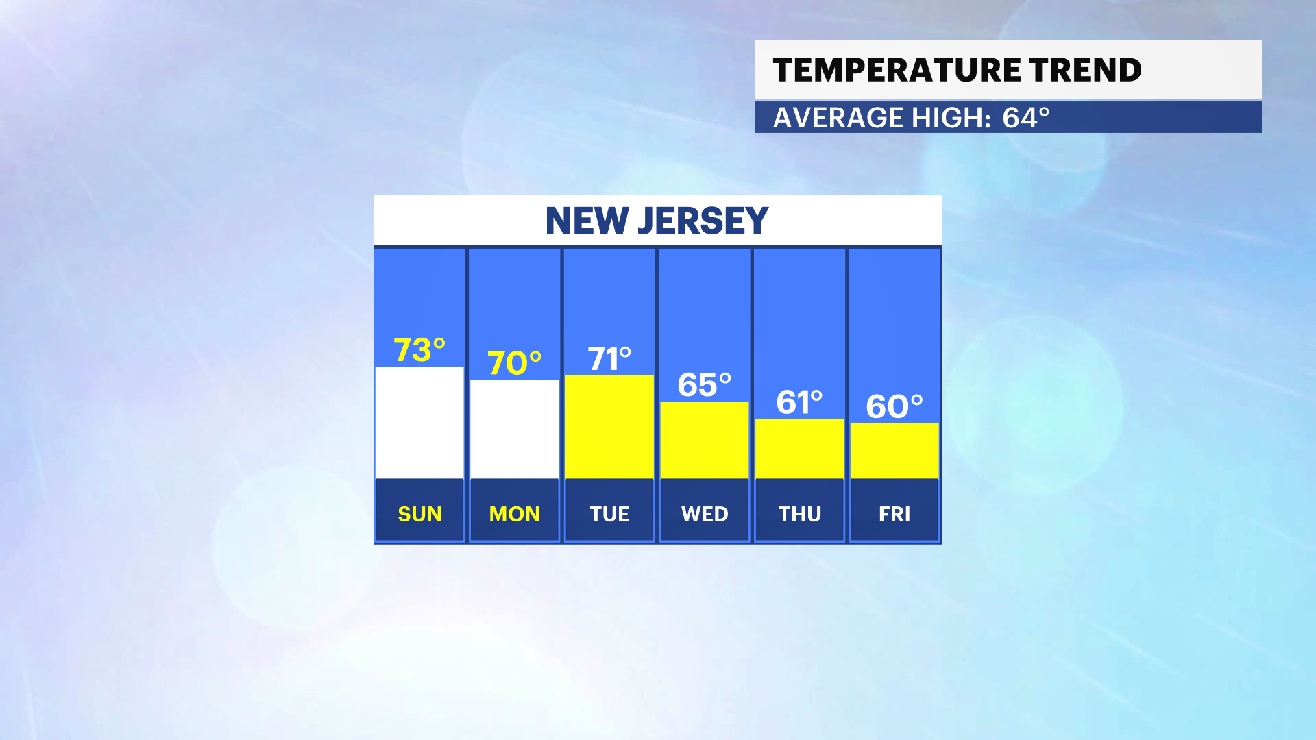 The temperatures remain cool for the rest of the week with passing clouds and fair conditions. There will be a few showers north of New Jersey through Thursday and Friday, but it will be dry locally with the exception of a rogue windswept sprinkle.