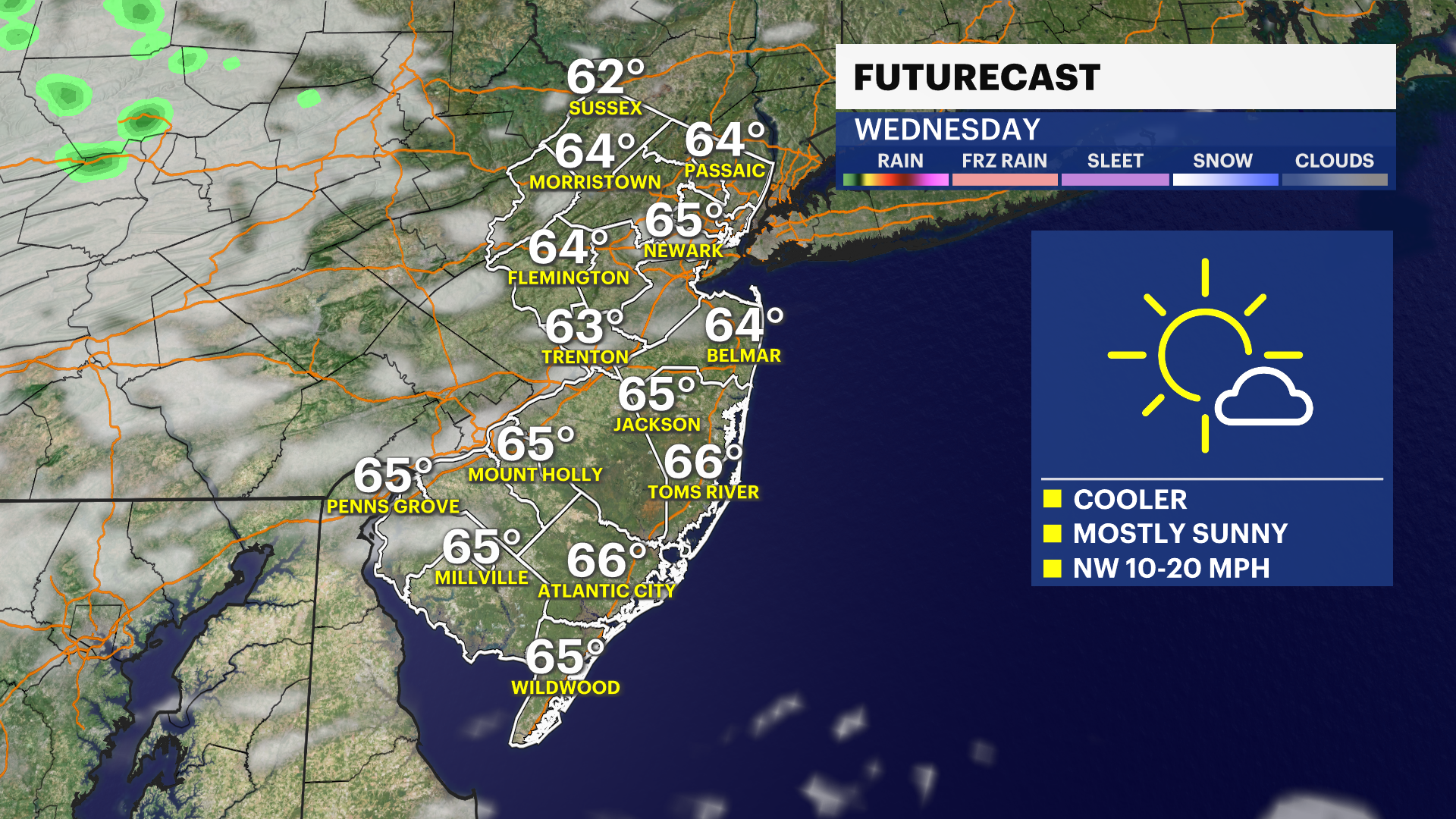 This will drop temperatures for Wednesday that keep highs in the lower 60s. There will be sunshine and breezy conditions for the midday.