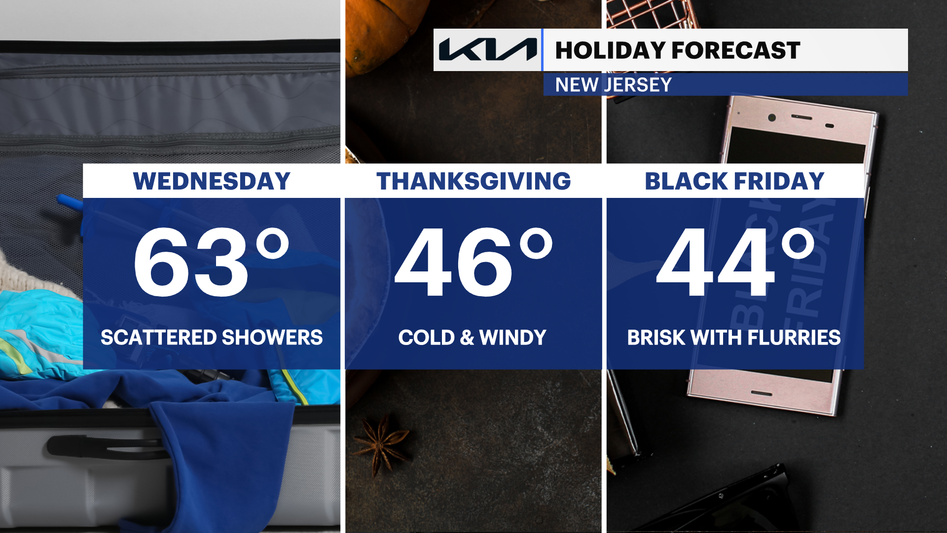 Windy and colder weather arrives for Thursday morning with winds near 25-35 mph. It will be sunny with passing clouds on Thanksgiving.