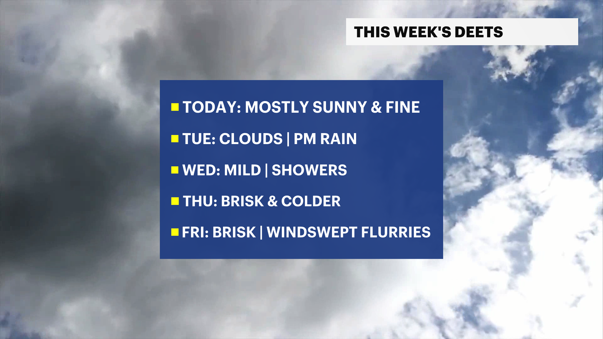 Friday will feature a mix of sun and clouds with cold temperatures again. Windswept flurries are possible from the clouds blowing across New Jersey from the Great Lakes region.