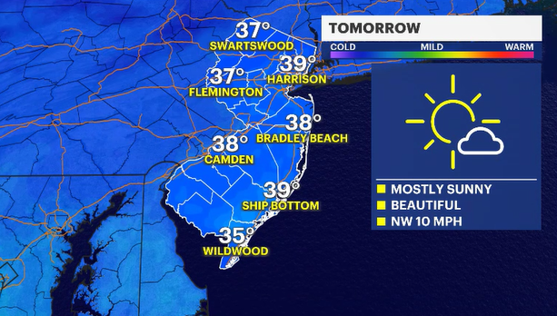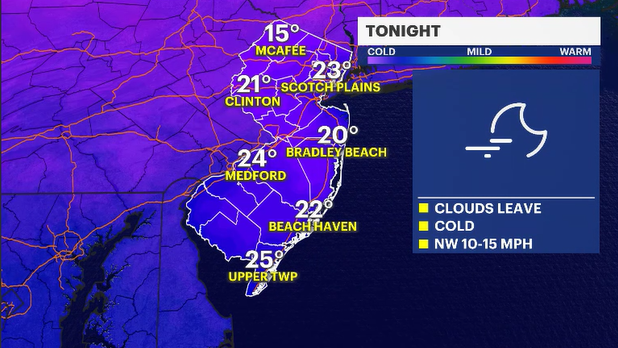 Tonight, our skies will clear as fair weather moves in from the Great Lakes. Winds could be on the gustier side, so it will feel colder waiting for the bus or train in the morning.
